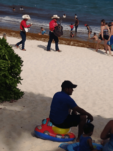 Seeing police with guns was a normal site when walking up and down the street. That can be looked at as good or bad. Depending on the person it can make you feel safe or make you feel unsafe thinking something bad is going to happen. The beach was pretty but I never got in the water because it had too much sargassum. As I walked on the beach I saw men singing on the beach in hats, long jeans, long sleeve shirts and boots. I’m sure that was their way of making money. I really admire the work ethic people have in Mexico. It seemed like everyone was doing something to make money, even the little kids.