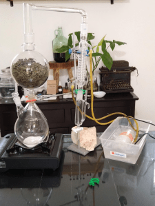 The separated water is called hydrosol. It has a lot of the same properties as the essential oil but it’s not as potent. At the end of the process I left with a nice size bottle of hydrosol and a smaller bottle of chinese tea essential oil. Chinese tea leaves produce a smaller amount of essential oil compared to other herbs. The instructor did tell me this ahead of time before I chose this herb.